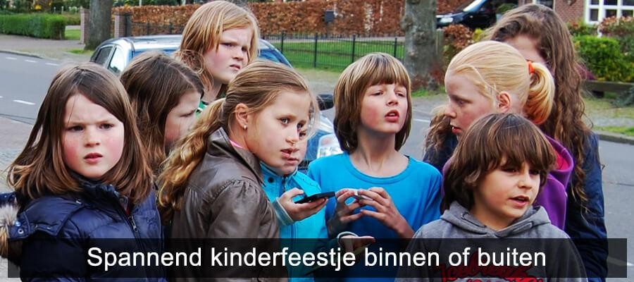 Tijdens een kinderfeestje buiten volgen de kinderen als spionnen verborgen aanwijzingen, kraken codes en sturen geheime berichten om een misdaad te voorkomen. Tijdens een kinderfeestje thuis voor binnen onderzoeken de kinderen als detectives het bewijs en controleren zij de verdachten om een misdaad op te lossen. Wie spreekt de waarheid, wat zeggen de getuigen en wie heeft een alibi? Het kinderfeestje zal bij u thuis of op een door u gekozen locatie plaatsvinden. Dit kan in elke woonplaats in Nederland en België.